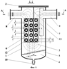 Нагрузка на постоянные кольцевые магниты 12 зависит от их расположения. Так, наиболее нагруженными являются постоянные кольцевые магниты первой секции, т.к. водный поток последовательно проходит сверху вниз в ней, а затем снизу поступает во вторую секцию, поднимаясь по каналам, образованным перегородками с размещенными на них постоянными кольцевыми магнитами, находящимися в этой секции, и далее через фильтрующую сетку 11 поступает на выход через выходной патрубок. 9.