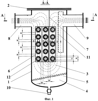 Выгрузку шлама из накопителя осуществляют периодически через патрубок 10.