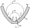 Фиг.13 схематически изображает функцию обоих лотков 20 и 40 для капель стекломассы в отношении криволинейного элемента 52, который может считаться осуществлением признака, являющегося общим с криволинейным элементом 22 осуществления согласно Фиг.1-6 и криволинейным элементом 42 осуществления согласно Фиг.7-12. Элемент 52 изображает контакт между стенками 52с, 52d элемента 52 с самой крупной каплей стекломассы G1 в некотором диапазоне размеров капли стекломассы, проходящей через элемент 52, и также с наименьшей каплей стекломассы G2 в этом диапазоне размеров капли стекломассы. Обе капли стекломассы G1 и G2, и также все капли с размерами от G1 до G2, опираются на стенки 52с, 52d в противоположных местоположениях LI, L2 – для капли G1 и L3, L4 – для капли G2; и капли G1 или G2 и какая-либо капля размером от размера G1 до размера G2 не контактируют со скруглением 52е элемента 52.