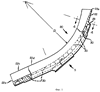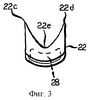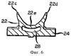 Фиг.1-6 иллюстрируют лоток для капель стекломассы под общим обозначением 20 согласно осуществлению данного изобретения. Капля 20 стекломассы подвергается колебаниям поэтапно, например, с помощью привода лотка для капель стекломассы, тип которого раскрыт в патенте США №5895514 (DiFrank), раскрытие которого включено в данный документ в качестве ссылки, для доставки капель расплавленного стекла в желоба разной конструкции, например в желоба 10 ОС-машины. Лоток 20 для капель стекломассы имеет криволинейный элемент 22, в который входят вертикально падающие капли стекломассы в верхнем его конце 22а, и выпускает эти капли стекломассы с небольшим наклоном в горизонтальную ориентацию из его нижнего конца 22b.