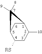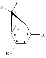 где R: -CH2CH3; -CH(CH3)2; -(CH2)7CH3; -CH2COOH; -CH2COOCH3. Транс-пиненилсульфиды содержат реакционно-способные фрагменты (сульфидную группу и двойную связь) и могут использоваться для синтеза новых соединений с потенциальной биологической активностью. Известен способ получения 4 Изобретение касается транс-пиненилсульфидов как потенциальных биологически активных веществ с радикалами сульфидной группы: -СН2СН3; -СН(СН3)2; -(СН2)7СН3; -СН2СООН; -СН2СООСН3. Цель – создание способа получения новых веществ класса транс-пиненилсульфидов. Цель достигается взаимодействием цис-вербенола с соответствующими тиолами, взятыми в молярном соотношении 1:3, и проведением процесса в присутствии каталитических количеств хлористого цинка в среде хлористого метилена при 20-25°С. Недостатком вышеуказанных известных способов получения терпенсульфидов является осуществление процесса в течение длительного времени (12-50 часов) и при повышенной температуре (75-140°С). Синтез транс-пиненилсульфидов ведут реакцией цис-вербенола с избытком соответствующего тиола в присутствии каталитических количеств хлористого цинка в среде хлористого метилена при 20-25°С в течение 2-3 часов. Выход, %; брутто-формула:
