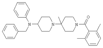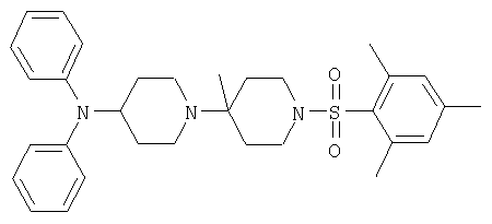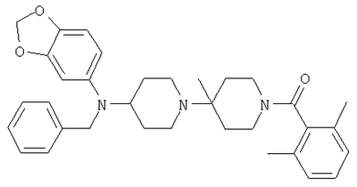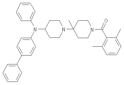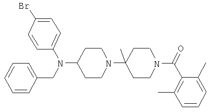 Это соединение получают из 1′-(2,6-диметилбензоил)-4′-метил-[1,4′]бипиперидинил-4-она и бензо[1,3]диоксол-5-иламина, следуя методике, описанной в примерах 51 и 52. MC/ESI 540 (М+Н)+.