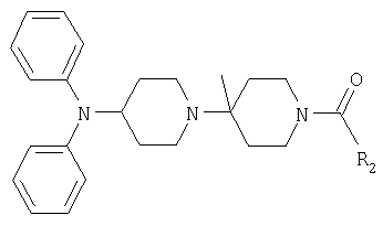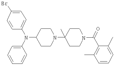 Это соединение получают из (4-бромфенил)фенилпиперидин-4-иламина и трет-бутилового эфира 4-фениламинопиперидин-1-карбоновой кислоты, применяя методику, описанную в примере 1, 1в) и 1г). MC/ESI 577 (М+Н)+.