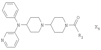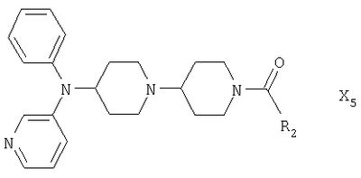 Это соединение получают из фенилпиперидин-4-илпиридин-3-иламина и трет-бутилового эфира 4-фениламинопиперидин-1-карбоновой кислоты, применяя методику, описанную в примере 1, 1в) и 1г). MC/ESI 485 (M+H)+.