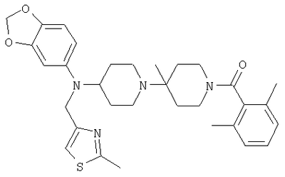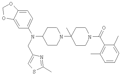 Пример 80: {4-[1,3-Бензодиоксол-5-ил-(2-метилтиазол-4-илметил)амино]-4′-метил-[1,4′]бипиперидинил-1′-ил}-(2,6-диметилфенил)метанон