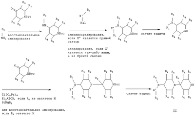 б) для получения соединения формулы I, где Х является прямой связью и Y означает -СН2-, проведение восстановительного аминирования соединения формулы II, указанного выше, где X’ означает прямую связь, или