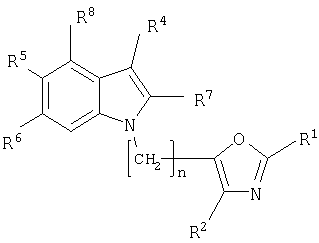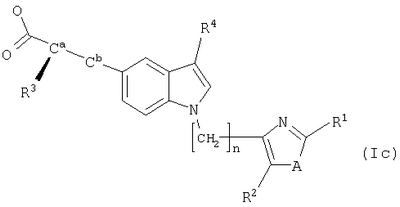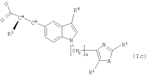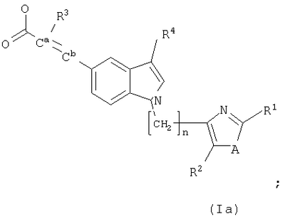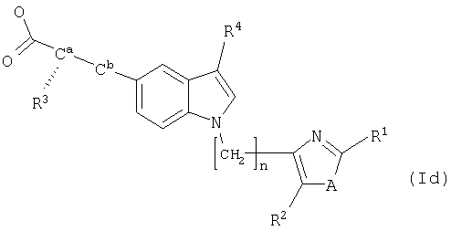 а другой обозначает водород, алкил или циклоалкил, и асимметрический атом углерода Ca находится в S конфигурации. Предпочтительными являются соединения, соответствующие следующей формуле (Ie) и их фармацевтически приемлемые соли и эфиры, в которых R1 обозначает арил или гетероарил; R2 обозначает водород, алкил или циклоалкил; R3 обозначает алкоксигруппу или алкоксигруппу, замещенную 1-3 атомами галогена; R4 обозначает водород, алкил или циклоалкил; А обозначает кислород или серу; n обозначает 1, 2 или 3; и в которых связь между атомами углерода Сa и Сb обозначает простую или двойную углерод углеродную связь. Далее, предпочтительными являются такие соединения формулы Ie, в которых связь между атомами углерода Сa и Сb обозначает двойную углерод углеродную связь. Эти соединения имеют следующую формулу Ia где заместители от R1 до R4, А и n имеют значения, определенные выше. Особенно предпочтительными являются те соединения формулы Ie, в которых связь между атомами углерода Ca и Сb обозначает простую углерод углеродную связь. Эти соединения имеют следующую формулу Ib где заместители R1-R4, А и n имеют значения, определенные выше. Предпочтительными являются хиральные соединения формулы (Ic), в которых заместители R1-R4, А и n имеют значения, определенные выше, а асимметрический атом углерода Сa находится в R конфигурации. Особенно предпочтительными являются хиральные соединения формулы (Id), где R1-R4, А и n имеют значения, определенные выше, а асимметрический атом углерода Сa находится в S конфигурации. В качестве примеров предпочтительных соединений формулы (I) можно назвать следующие: (рац)-2-Этокси-3-[1-(5-метил-2-фенилоксазол-4-илметил)-1Н-индол-5-ил]пропионовая кислота; (S)-2-Этокси-3-[1-(5-метил-2-фенилоксазол-4-илметил)-1Н-индол-5-ил]пропионовая кислота; (рац)-2-Этокси-3-{1-[2-(2-фторфенил)-5-метилоксазол-4-илметил]-1Н-индол-5-ил}пропионовая кислота; (рац)-3-{1-[2-(2-Хлорфенил)-5-метилоксазол-4-илметил]-1Н-индол-5-ил}-2-этоксипропионовая кислота; (S)-3-{1-[2-(2-Хлорфенил)-5-метилоксазол-4-илметил]-1Н-индол-5-ил}-2-этоксипропионовая кислота; (рац)-2-Этокси-3-[1-(5-метил-2-о-толилоксазол-4-илметил)-1Н-индол-5-ил]пропионовая кислота; (рац)-2-Этокси-3-{1-[2-(2-метоксифенил)-5-метилоксазол-4-илметил]-1Н-индол-5-ил}пропионовая кислота; (S)-2-Этокси-3-{1-[2-(2-метоксифенил)-5-метилоксазол-4-илметил]-1Н-индол-5-ил}пропионовая кислота; (рац)-2-Этокси-3-{1-[2-(2-изопропоксифенил)-5-метилоксазол-4-илметил]-1Н-индол-5-ил}пропионовая кислота; (рац)-3-{1-[2-(3-Хлорфенил)-5-метилоксазол-4-илметил]-1Н-индол-5-ил}-2-этоксипропионовая кислота; (рац)-2-Этокси-3-{1-[2-(4-этилфенил)-5-метилоксазол-4-илметил]-1Н-индол-5-ил}пропионовая кислота; (S)-2-Этокси-3-{1-[2-(4-этилфенил)-5-метилоксазол-4-илметил]-1Н-индол-5-ил}пропионовая кислота; (R)-2-Этокси-3-{1-[2-(4-этилфенил)-5-метилоксазол-4-илметил]-1Н-индол-5-ил}пропионовая кислота; (рац)-2-Этокси-3-{1-[2-(4-изопропилфенил)-5-метилоксазол-4-илметил]-1Н-индол-5-ил}пропионовая кислота; (рац)-3-{1-[2-(4-трет-Бутилфенил)-5-метилоксазол-4-илметил]-1Н-индол-5-ил}-2-этоксипропионовая кислота; (рац)-2-Этокси-3-{1-[2-(4-фторфенил)-5-метилоксазол-4-илметил]-1Н-индол-5-ил}пропионовая кислота; (рац)-2-Этокси-3-{1-[5-метил-2-(4-трифторметилфенил)оксазол-4-илметил]-1Н-индол-5-ил}пропионовая кислота; (S)-2-Этокси-3-{1-[5-метил-2-(4-трифторметилфенил)оксазол-4-илметил]-1Н-индол-5-ил}пропионовая кислота; (рац)-3-{1-[2-(3,5-Диметилфенил)-5-метилоксазол-4-илметил]-1Н-индол-5-ил}-2-этоксипропионовая кислота; (рац)-3-{1-[2-(3,5-Диметок