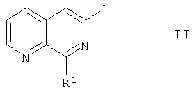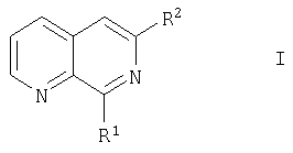 не обязательно в защищенной форме, где R2 является таким, как определено в п.1, и Х является уходящим атомом или уходящей группой, которая реагирует с L соединения формулы II с образованием прямой связи между R2 и указанным нафтиридиновым кольцом, с последующим снятием защиты, если требуется, или (Б) реакцию соединения формулы I, где R2 означает циклоалкил, замещенный (С1-С8)алкоксикарбонильной группой, с целью превращения алкоксикарбонильной группы в карбоксильную группу, (В) гидролиз соединения формулы I, где R2 является циклоалифатической группой, замещенной (С1-С8)-алкоксикарбонил(С1-С8) алкоксигруппой, для получения соединений формулы I, где R2 является циклоалифатической группой, замещенной карбокси(С1-С8)алкоксигруппой, или (Г) окисление соединения формулы I, где R1 означает фенил, замещенный (С1-С8)алкилтиогруппой, для получения соединений формулы I, где R1 означает фенил, замещенный -SO-(C1-C8)алкилом, и (ii) выделение продукта в свободной форме или в виде соли. Приоритет от 05.11.2001 согласно заявке 01265511.5 установлен по пп.1-7 формулы изобретения; Приоритет от 05.11.2001 и 30.04.2002 согласно заявкам 01265511.5 и 0209882.0 установлен по п.8 формулы изобретения.