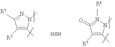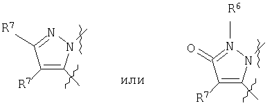 R6 и R7 могут, в одной или более парах двух (таких, как R6 и R7, R6 и R6 или R7 и R7), вместе с атомами, к которым они присоединены, образовывать карбоциклическую, замещенную карбоциклическую, гетероциклическую или замещенную гетероциклическую группу;