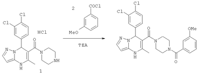 1-[[7-(3,4-Дихлорфенил)-4,7-дигидро-5-фенилпиразол[1,5-а]пиримидин-6-ил]карбонил]-4-(4-фторфенил)пиперазин;