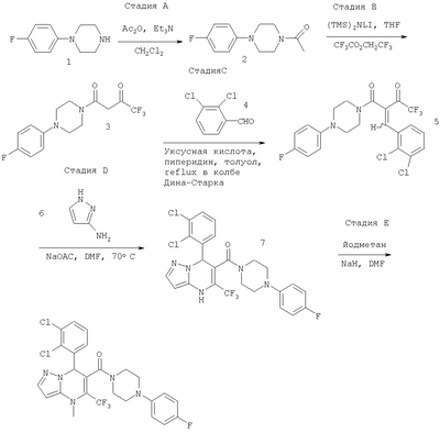 1-[[7-(3,4-Дихлорфенил)-4,7дигидро-5-метил-2-(трифторметил)пиразол[1,5-а]пиримидин-6-ил]карбонил]-4-метилпиперазин;