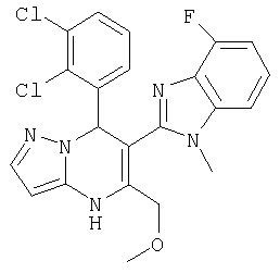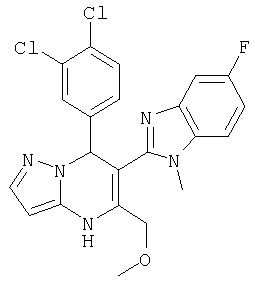 11. Соединение 7-(3,4-дихлорфенил)-6-(5-фтор-1-метил-1Н-бензимидазол-2-ил)-4,7-дигидро-5-(метоксиметил)пиразол[1,5-а]пиримидин, его энантиомеры, сольваты и соли.
