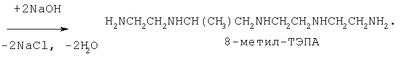 Сущность изобретения поясняется следующими примерами. Пример 1. В реактор, снабженный механической мешалкой, термометром, холодильником и капельной воронкой загружают 80 г (0,1 моль) полиальфаолефина (молекулярная масса 800), 9,8 г (0,1 моль) малеинового ангидрида, 0,7 г (0,8%) перекиси третичного бутила (0,8% от веса ПАО и МА), мольное соотношение ПАО: МА=1:1. Реакционную смесь перемешивают при 60°С в течение 1 ч и выдерживают при 165-170°С в течение 3,5 ч. Полученный алкенилянтарный ангидрид охлаждают до 50-70°С, смешивают с маслом И-20А в весовом соотношении 1:1, фильтруют (от механических примесей и гомополимеров). Раствор янтарного ангидрида в масле И-20А переводят в промежуточную емкость. Затем в реактор загружают 16,0 г (0,1 моль) 5-метил-ТЭТА, 16,0 г масла И-20А, перемешивают в течение 0,5 ч при комнатной температуре, затем температуру повышают до 55-58°С и при этой температуре дозируют раствор алкенилянтарного ангидрида в масле (мольное соотношение алкенилянтарного ангидрида: амина = 1:1), выдерживают при 135-140°С в течение 4 ч, охлаждают до 80-90°С, после чего к системе подключают вакуум и при 130-140°С (15-20 мм рт.ст.) отгоняют воду, затем содержимое реактора охлаждают до 50-80°С и фильтруют через суконный фильтр. Получено 101,7 г (97,8%) алкенилсукцинимида. Образование имида подтверждается образованием эквимольного количества воды, данными ИК-спектров. На первой стадии присутствие малеинового ангидрида не обнаружено. Результаты испытаний на соответствие ТУ приведены в таблице. Пример 2. В условиях примера 1 в реактор загружают 100,0 г (0,1 моль) ПАО с молекулярной массой 1000, 10,7 г (0,11 моль) МА, 1,5 г перекиси МЭК, мольное соотношение ПАО: МА = 1:1,1. Реакционную смесь нагревают до 80°С в течение 1 ч и выдерживают при 165-169°С в течение 4,5 ч, после чего охлаждают до 60-65°С, смешивают с 110,7 г масла И-40А (1:1), фильтруют и переводят содержимое реактора в промежуточную емкость. В реактор загружают 24,6 г (0,1 моль) 8-метил-ПЭГА, 24,6 г масла И-40А, перемешивают при 30-40°С в течение 1 ч и дозируют раствор алкенилянтарного ангидрида в масле И-40А (мольное соотношение алкенилянтарного ангидрида: амина = 1:1), выдерживают при 136-140°С в течение 3,5 ч. Затем отгоняют воду при 135-140°С и давлении 15-20 мм рт.ст. Смесь охлаждают до 60°С и фильтруют. Получено 229,0 г (98,1%) имида. Результаты испытаний на соответствие ТУ приведены в таблице. Пример 3. В условиях примера 1 в реактор загружают 90,0 г (0,1 моль) ПИБ с молекулярной массой 900, 10,3 г (0,105 моль) МА, 1,1 г ПДТБ, мольное соотношение ПИБ: МА = 1:1,05. Реакционную смесь нагревают до 100°С в течение 0,5 ч и выдерживают при 166-169°С в течение 3,5 ч, затем содержимое реактора охлаждают до 70°С, смешивают с 100 г масла И-20А (1:1), фильтруют и переводят содержимое реактора в промежуточную емкость. В реактор загружают 16,0 г (0,1 моль) 5-метил-ТЭТА, 16,0 г масла И-20А, перемешивают при 50-55°С в течение 0,5 ч и дозируют раствор алкенилянтарного ангидрида в масле (мольное соотношение алкенилянтарного ангидрида:амина = 1:1), выдерживают при 135-145°С в течение 4 ч. Затем отгоняют воду при 135-140°С и давлении 15-25 мм рт.ст. Смесь охлаждают до 60°С и фильтруют. Получено 112,4 г (98,2%) продукта. Результаты испытаний на соответствие ТУ приведены в таблице. Пример 4. В условиях примера 1 в реактор загружают 120 г (0,15 моль) ПАО с молекулярной массой 800, 14,7 г (0,15 моль) МА, 1,95 г (1% от суммарного веса ПАО и МА) ПДТБ, мольное соотношение ПАО:МА = 1:1. Реакционную смесь нагревают до 60°С в т