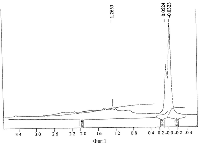 Н ЯМР-спектры полимеров сняты на спектрометре Bruker MSL-300 в среде дейтерохлороформа, при 300 и 75,47 МГц (в качестве внутреннего стандарта используют CDCl3). 1H ЯМР-спектр ПТМСН-ад (фиг.1) состоит из сигналов протонов карбоцикла (m, 0.5-2.7 м.д.), эндо-Si(CH3)3 (s, -0.052 м.д.) и экзо-Si(CH3)3 (s, -0.042 м.д.). Соотношение интегралов соответствует структуре ПТМСН-ад.