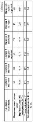 Изобретение относится к получению огнестойкого пенополиуретана и может быть использовано в транспорте, строительстве и других областях, где требуется тепло- и звукоизоляционные материалы. Пенополиуретаны относятся к органическим горючим материалам, так как имеют высокую удельную поверхность, заполненную воздухом. Этим свойством обладают не только эластичные открытопористые (на 98-99%) пенополиуретаны, но и их жесткие закрытопористые аналоги. Однако получить без специальных неорганических добавок на 100% закрытую жесткую пенополиуретановую массу невозможно. В пределе такие материалы имеют закрытые поры на 95-97%. Как показывает эксперимент, заполнение всего образца воздухом за счет открытых пор (на 3-5%) происходит достаточно быстро (от 1 часа до 3-4 часов). Для снижения горючести пенополиуретанов используют обычно метод введения антипиренов. Наиболее близким к заявленному по технической сущности и достигаемому результату, выбранным в качестве прототипа, является способ получения огнестойкого пенополиуретана, защищенный патентом РФ №2268899, кл. C08G 18/08, C08G 18/48, опубл. 2006.01.27. Способ включает взаимодействие полиола и изоцианата в присутствии расширенного графита, аминного активатора, стабилизатора и вспенивателя, причем композиция дополнительно содержит цианурат меламина и модифицирующую добавку – многоатомные спирты. В качестве вспенивателя композиция содержит воду или фреон. Полиэфирполиол перед взаимодействием с полиизоцианатом предварительно смешивают с аминньм активатором, стабилизатором, модифицирующей добавкой и вспенивателем, а затем добавляют расширенный графит и цианурат меламина при соотношении 1-2:1 и суммарном количестве 15-30 мас.% от общего количества компонентов. В полиэфирполиол дополнительно вводят фосфатный антипирен – трихлорэтилфосфат. Получаемый пенополиуретан имеет высокие показатели по огнестойкости, но низкие физико-механические характеристики по прочности и теплостойкости. Повышение двух последних показателей особенно важно для различных строительных конструкций (изготовление строительных панелей, заливочных паст для звуко- и теплозащиты, термоизоляционных накладок на различные трубопроводы и т.п.). Жесткий пенополиуретан часто используют как материал конструкционный для соединения строительных элементов в современных технологиях строительства. Задача, решаемая предлагаемым изобретением, – создание способа получения жесткого пенополиуретана, сочетающего в себе высокую огнестойкость с сохранением тепло- и звукоизолирующих свойств, а также повышенными показателями по прочности и теплостойкости. Технический результат от использования изобретения заключается в повышении прочности и теплостойкости. Указанный результат достигается тем, что в способе получения огнестойкого пенополиуретана из композиции, включающей полиэфирполиол, полиизоцианат, аминный активатор, модифицирующую добавку – многоатомные спирты и вспениватель – воду или фреон, расширенный графит, предварительно смешанный с циануратом меламина при соотношении 1-2:1 и суммарном количестве 15-30 мас.% от общего количества компонентов, в предварительно приготовленную смесь графита с циануратом меламина дополнительно вводят гипс, полиэфирполиол перед взаимодействием с полиизоцианатом предварительно смешивают снача