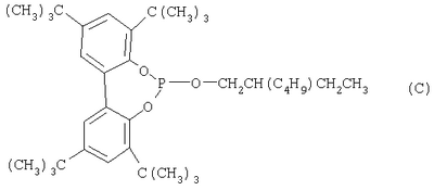 где Т1 – линейный или разветвленный алкил с 1-36 атомами углерода, циклоалкил с 5-12 атомами углерода, аралкил с 7-9 атомами углерода или упомянутый аралкил, замещенный одним или двумя алкилами с 1-12 углеродными атомами или одним или двумя атомами галогена; Т2 – водород или, независимо, представляет собой то же, что и Т1; и Т3 – аллил, линейный или разветвленный алкил с 1-36 атомами углерода, циклоалкил с 5-18 атомами углерода, циклоалкенил с 5-18 атомами углерода или линейный или разветвленный алкил с 1-4 атомами углерода, замещенный фенилом, или фенилом, замещенным одной или двумя алкильными группами, содержащими от 1 до 4 углеродных атомов, или одним или двумя атомами галогена. 9. Способ по п.1, в котором компонент (ii) представляет собой O-аллил-N,N-диоктадецилгидроксиламин, или O-н-пропил-N,N-диоктадецилгидроксиламин, или N,N-дигидрированный жирный ацетоксиамин. 10. Способ по п.1, где нитроновые стабилизаторы (iii) имеют формулу V