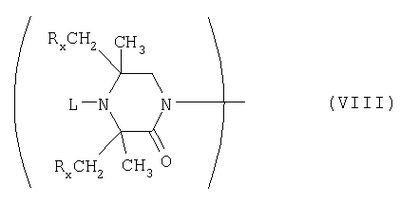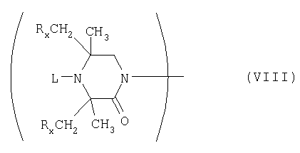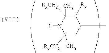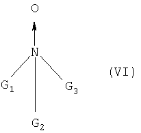 где L1 – линейный или разветвленный алкил, содержащий от 1 до 36 атомов углерода, циклоалкил с числом атомов углерода от 5 до 12, аралкил с числом углеродных атомов от 7 до 9, или упомянутый аралкил, замещенный одним или двумя алкилами с числом углеродных атомов от 1 до 12, или одним или двумя атомами галогена; и L2 и L3 являются, независимо, водородом, линейным или разветвленным алкилом, содержащим от 1 до 36 атомов углерода, циклоалкилом с числом атомов углерода от 5 до 12, аралкилом с числом углеродных атомов от 7 до 9, или упомянутым аралкилом, замещенным одним или двумя алкилами с числом углеродных атомов от 1 до 12, или одним или двумя атомами галогена: или L1 и L2 вместе образуют пяти- или шестичленный цикл, включающий атом азота. Нитроны компонента iii.) могут быть соответствующими продуктами окисления гидроксиламинов компонента i.). То есть нитроны компонента iii.) могут быть нитроновыми аналогами гидроксиламинов компонента i.). Например, нитронами могут быть N-бензил- Аминоксидные стабилизаторы компонента iv.) представляют собой, например, такие, которые раскрыты в патентах US 5081300, 5162408, 5844029, 5880191 и 5922794, соответствующие фрагменты которых приводятся здесь в качестве ссылок. Например, аминоксидные стабилизаторы компонента iv.) представляют собой насыщенные третичные аминоксиды, имеющие общую формулу VI: