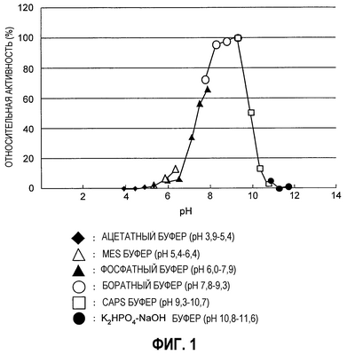 (р) последовательность оснований, которая гибридизуется в строгих условиях с ДНК, имеющей последовательность оснований, комплементарную последовательности оснований, состоящей из оснований с номерами 61-1917 в SEQ ID NO:11, и которая кодирует белок, обладающий пептидобразующей активностью на уровне по меньшей мере 50% при 50°С и рН 8 относительно белка, кодируемого немутированной последовательностью оснований с номерами 61-1917 в SEQ ID NO:11,