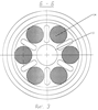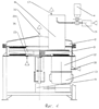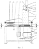 Основание 2 снабжено расположенным под диском 11 патрубком 15 подачи углеводородного газа, в качестве которого может использоваться окись углерода, различные углеводороды, в том числе содержащих кислород, такие как формальдегид, уксусный альдегид, ацетон, метанол, этиловый спирт, или их смесь, а также ароматические углеводороды: бензол, толуол, ксилол, кумол, этилбензол, нафталин, фенантрен, антрацен или их смеси. Кроме того, могут использоваться неароматические углеводороды, такие как метан, этан, пропан, этилен, пропилен или ацетилен, или их смеси. При этом предпочтение отдается углеводороду – метану. На крышке 3 и камере-осадителе 11 расположен патрубок 16 отвода газообразных продуктов пиролиза. Сборник готового продукта 13 соединен с линией подачи инертного газа 18. В линии подачи инертного газа 6 установлен нагреватель 19. На фиг.4 показан вариант выполнения диска 11 с лопастями 20, расположенными на его нижней поверхности. На фиг.1 показан слой катализатора и продукта 21, находящийся на диске 11. На фиг.2 продукт 21 показан как неметаллический материал в разрезе (сечение А-А) и поэтому заштрихован.