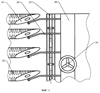 Для регулировки глубины борозд устройства 19 и 20 снабжены приспособлением для перемещения полного ряда рабочих органов в вертикальном направлении, посредством, например, винтов 24, в раме 25. Более подробно указанное приспособление показано на фиг.2 и 3.
