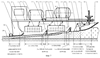 Во избежание повреждения устройств 19 и 20 при перегонах установки с одного участка на другой установка содержит приспособления для перевода устройств 19 и 20 в транспортное положение. Конструкция этих приспособлений зависит от конкретного исполнения устройств 19 и 20. Например, если рабочие органы 22 вместе с осью 23 установлены на задней стенке теплового модуля (фиг.1), то их можно поднимать вверх к платформе 1 вместе с модулем (для устройства 20) или откидывать на шарнирах на лыжу 8 (для устройства 19).