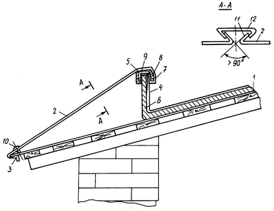 Известное техническое решение позволяет снизить сцепление замерзающей воды с поверхностью крыши в нижней ее части и тем самым снизить вероятность образования наледи и сосулек, либо, как минимум, снизить нагрузки на кровлю в процессе удаления с крыши наледи.