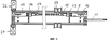 На фиг.3 и 4 более подробно показаны оба примера выполнения по фиг.1 и 2 в отношении выполнения направляющей рейки 3, в особенности профильной направляющей рейки. Фиг.3 соответствует примеру выполнения по фиг.1, а фиг.4 – примеру выполнения по фиг.2. На этих чертежах первый вставной блок 8 оснащен натяжным устройством 13 тягового средства, а второй вставной блок 10 оснащен натяжным устройством 14 тягового средства. Каждое натяжное устройство 13, 14 содержит крюк или другую часть замкнутой формы, например, в виде байонетного запорного устройства, которое позволяет закреплять или освобождать тяговое средство без применения дополнительного замка, а также регулировочное устройство для регулировки положения крюка по длине направляющей рейки. В примере выполнения по фиг.3 и 4 эти устройства представлены в виде крюков 15 и регулировочных устройств 16. Между этими крюками 15 натянуто тяговое средство 17. Натяжное устройство 13 и тяговое средство 17 соединены с жилой электрического кабеля 11. С тяговым средством 17 зацепляется не показанное зубчатое колесо или звездочка электромотора, расположенного на каретке 4. Таким образом, рабочая обмотка электродвигателя питается током, который подается по защищенному пути.