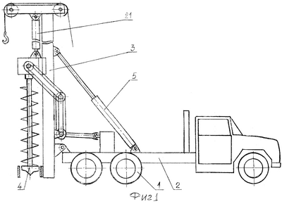 Изобретение относится к устройствам, а именно к бурильно-крановым машинам, используемым для бурения скважин под столбы и опоры, а также может быть использовано при строительстве жилых и промышленных объектов, в горном деле и в сельском хозяйстве для дренажных систем.