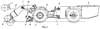 Фреза 8 в рабочем положении располагается перед отвалом 9. Она состоит из неподвижной центральной опоры 17 и примыкающих к ней, установленных на валу с возможностью вращения вокруг оси Y-Y двух боковых барабанов 18 и 19. Каждый из них оснащен в своей центральной зоне спиральной навивкой 20 и опорами 21 для зубьев 22, расположенными на поверхности боковых барабанов 18 и 19 по двузаходной спирали 23 и 24 с переменным шагом. Спиральная навивка 20 и двузаходные спирали 23 и 24 опор 21 выполнены на каждом боковом барабане 18 и 19 противоположно направленными. На каждой опоре 21 закреплен стакан 25 для установки зуба 22. Каждый зуб 22 фрезы 8 выполнен коническим, развернут вперед по направлению вращения боковых барабанов 18 и 19 фрезы 8 и установлен в стакане 25 с возможностью вращения вокруг оси Z-Z. Оси Z-Z стаканов 25 развернуты веерообразно по отношению к спиральной навивке 20 таким образом, что оси Z-Z стаканов 25 внутренней зоны боковых барабанов 18 и 19 направлены к центральной опоре 17 фрезы 8, а оси Z-Z стаканов 25 периферийной зоны барабанов 18 и 19 направлены в противоположную сторону от центральной опоры 17 фрезы 8. Часть опор 21 зубьев 22 периферийной зоны боковых барабанов 18 и 19 фрезы 8 расположена на ее торцевой поверхности 26. Фреза 8 имеет механизм (на рисунке не показан) регулировки скорости вращения зубьев 22 относительно скорости вращения ее боковых барабанов 18 и 19. Скорость вращения зубьев 22 выбирается большей, чем скорость вращения боковых барабанов 18 и 19 фрезы 8.