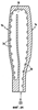 Следует отметить, что в рассматриваемом варианте выполнения центрального охлаждающего контура (или контуров) лопатки по изобретению охлаждающий воздух движется вверх (от корневой части лопатки к внешнему краю пера) в полостях на вогнутой стороне пера и вниз в полости на выпуклой стороне пера.