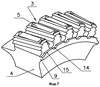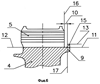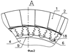 В результате канавка 10 получается разделенной на всю глубину пазами 3 на участки с общей донной поверхностью 11 и боковыми поверхностями 16, 17 выступов 5 и 15 соответственно.