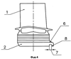 Для крепления в пазу 3 диска 4 хвостовика 2 лопатки 1 предназначена контровка 18 (см. фиг.8). Она представляет собой изогнутый стержень прямоугольного сечения, один конец 19 которой может быть предварительно загнут под прямым углом в радиальном направлении от продольной оси колеса.