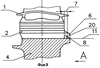 Следует отметить, что кольцевой бурт 9 частично прикрывает выступы 6 на рабочих лопатках турбины и отогнутые концы 19 и 21 контровки 18, чем снижает вентиляционные потери.