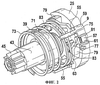 На фиг.3 полюсная трубка 9 и диск 63 показаны в положении, соответствующем этому положению зацепления шестерни привода с зубчатым венцом маховика. При последующем повороте полюсной трубки 9 до упора ее соответствующих лапок в ограничитель 61, образованный стенкой выемки 57 в неподвижной промежуточной опоре 25, диск 63 продолжает перемещаться вперед против усилия буферной пружины 71 до тех пор, пока он надвинется на торец по меньшей мере одного сформированного на промежуточной опоре 25 и обращенного в осевом направлении уступа 83. В этом положении диск 63 вместе с выходным валом 33 застопорены от дальнейшего перемещения. Это положение показано на фиг.4.