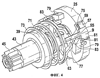 В одном из вариантов конструктивного исполнения рассмотренного выше стартера предлагается несколько иначе выполнять диск 63 и промежуточную опору 25. Если в описанном выше варианте уступ 83 входил в отверстие в диске 63 и представлял собой радиальный упор для этого отверстия в диске 63, то согласно другому варианту предлагается, с одной стороны, выполнять в диске 63 отверстие в виде слегка изогнутой прорези между двумя выпуклыми участками 77. С другой стороны, в соответствии с этим вариантом уступ 83 предлагается располагать не в зоне направляющей поверхности 81, а на осевом торце выступа 79.