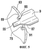 Для преобразования поворотного движения полюсной трубки 9 в осевое перемещение выходного вала 33 можно использовать и различные иные схемы, отличные от показанного на фиг.1-4 варианта. В принципе для подобного преобразования используется устройство, состоящее из направляющей поверхности и скользящего по ней направляющего элемента, при этом направляющая поверхность либо направляющий элемент кинематически связана, соответственно связан, с перемещаемым в осевом направлении выходным валом, а направляющий элемент либо направляющая поверхность расположен, соответственно расположена, на не перемещаемой в осевом направлении вместе с выходным валом части стартера. При этом полюсная трубка 9 должна быть кинематически связана с направляющей поверхностью или с направляющим элементом таким образом, чтобы при повороте полюсной трубки 9 направляющий элемент мог скользить по направляющей поверхности. Помимо этого направляющей поверхности и направляющему элементу необходимо придавать такую форму, чтобы при скольжении направляющего элемента по направляющей поверхности выходной вал 33 совершал осевое перемещение. В показанном на фиг.5 примере, где показан фрагмент полюсной трубки 9 и установленного на выходном валу 33 диска 63, направляющая поверхность образована лапкой 55 полюсной трубки 9. Иными словами, лапка 55 полюсной трубки, расположенная в углублении 75 диска 63, имеет участок со скошенными боковыми поверхностями 85 и 87, сходящимися в сторону диска 63. Эти боковые поверхности 85, 87 образуют направляющие поверхности для ограничивающих углубление 75 уступов 89 и 91. При повороте полюсной трубки 9 либо уступ 89 скользит по боковой поверхности 85, либо уступ 91 скользит по боковой поверхности 87 лапки полюсной трубки 9, что сопровождается перемещением вперед диска 63. Уступы 89 и 91 с целью уменьшить вероятность их торможения при их скольжении по боковым поверхностям 85, соответственно 87 лапки полюсной трубки 9, выполнены скругленными.