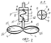 При использовании редуктора 31 вращение ротора 7 передается патрубку или валу 20, а через них лопастям 4 или лопастям 22 через редуктор 31, который в основном используется как усилитель вращающего момента ротора 7, за счет уменьшения скорости вращения лопастей 4 или 22 по сравнению со скоростью вращения ротора 7. Это рентабельно при выполнении лопастей 4 или 22 значительных размеров, требующих большой мощности привода 2 и не требующих большой скорости их вращения. В этом случае носитель тепла или холода проходит по приводу 2 мимо редуктора 31 через зазор, выполненный между ним стенками привода.