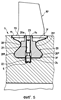 Наконец, весь ряд со скольжением продвигают в кольцевом гнезде 3, пока два блока 20 или, более точно, их центральные отверстия 21 не совпадут с глухими отверстиями 5 так, что можно ввинчивать штифты 22, пока их головки 24 не войдут в глухие отверстия 5.