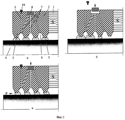 В магнитожидкостном уплотнении (фиг.1, а) к постоянному магниту 1 примыкают полюсные приставки 2, имеющие зубцы 3, обращенные к валу 4. Каждый зазор между зубцом и валом заполнен магнитной жидкостью 5. Полости 6, образующиеся между зубцами, соединены каналами 7 с запорным клапаном 8. В рабочем состоянии уплотнения клапан находится в закрытом состоянии, то есть каналы 7 загерметизированы и полости 6 изолированы друг от друга. В полюсной приставке со стороны повышенного давления на уплотнении выполнен заправочный канал 9. Выход заправочного канала расположен в межзубцовой зоне между первым и вторым зубцом, а вход снабжен герметичной заглушкой 10.