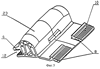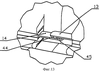 От самопроизвольного раскрытия скрепляющих элементов приемного 6 и заходного 9 узлов применяют фиксаторы 13, 14 (фиг.3, 7). Они имеют форму прямоугольных клиновидных пластин, на поверхностях которых с обеих сторон выполнены аналогичные, как на приемном и заходном узлах, скрепляющие элементы 22 (фиг.3, 7) типа “елочка”. Скрепляющие элементы типа “елочка” с шагом, равным 3,5-6,5 мм, предназначены для крепления сегментов приемного 6 и заходного 9 (фиг.3) узлов друг с другом. Кроме того, скрепляющие элементы типа “елочка” с шагом 3,5-6,5 мм на приемном 11 и заходном 10 (фиг.3, 4) узлах являются направляющими, по которым фиксаторы 13, 14 (фиг.3) в момент их установки перемещают навстречу друг другу с боковых сторон приемного узла 6 (фиг.3) сегмента, где они фиксируют сегменты 4, 5 (фиг.3) между внутренней верхней частью скрепляющих элементов приемного узла 6 и верхней наружной частью заходного узла 9 (фиг.3) по окончании их установки.