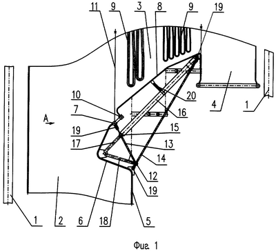 – верхний коллектор заднего экрана в глубину топки смещен в направлении, параллельном верхнему (по ходу рабочей среды) участку аэродинамического выступа;