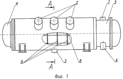 Изобретение иллюстрируется чертежами, где на фиг.1 изображен горизонтальный подогреватель, на фиг.2 – его поперечный разрез.
