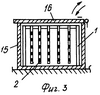 21 – стеллаж для размещения рамы 20 со щетками 19, 22 – направления движений штока 9 при заполнении решеток 2 сапропелевой массой 3, 23 – направления движений штока 9 при очистке щеток 2 от высушенного сапропеля, 24 – поток нагретого воздуха.