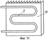 на фиг.11 представлен внешний вид конденсатора, выполненного в виде пустотелого трубчатого змеевика, сопряженного с оребренной пластиной радиатора;