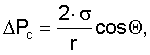 где Рc – капиллярное давление, – коэффициент поверхностного натяжения теплоносителя на границе жидкость-пар, r – эффективный радиус пор фитильной структуры, – краевой угол смачивания фитильной структуры теплоносителем.