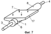 на фиг.7 показан внешний вид цилиндрического испарителя с резервуаром, расположенными в одном корпусе, снабженном дополнительным элементом «цилиндр-плоскость», размещенным в зоне подвода тепла;