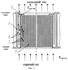 В момент, когда матрица находится в горячей полости двигателя и через нее со стороны горячей щеки проходит горячий теплоноситель (например, горячий выхлопной газ), он делится на два потока (фиг.5).