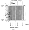 1. Способ охлаждения каркаса вращающегося дискового теплообменника, при котором из каждого потока теплообменивающихся газообразных сред, например горячего газа и воздуха, попеременно подаваемых в матрицу, отбирают часть потока в заданном объеме и направляют в канал охлаждения, сформированный вдоль стенки каркаса между горячей и холодной щеками теплообменника, отличающийся тем, что канал охлаждения выполняют закрытым со стороны горячей щеки и упомянутую часть потока горячего газа в канал охлаждения вводят со стороны холодной щеки после его предварительного охлаждения.
