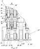 Под нижней ветвью ленточных транспортеров обеих секций и их боковых сторон установлены направляющие 31 для перемещения по ним снарядов второго яруса.