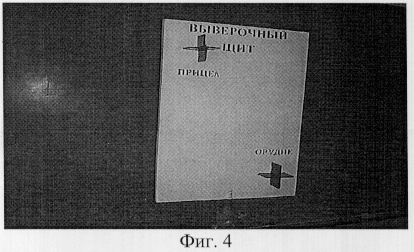 Выверочный коллимационный щит 8 для проверки и выверки нулевой линии прицелов (оптического прицела ОП-4, электронно-оптического прицела 1ПН53 и тепловизионного прицела к противотанковой пушке) реализован в виде лабораторного макета. Внешний вид варианта щита приведен на фиг.4.